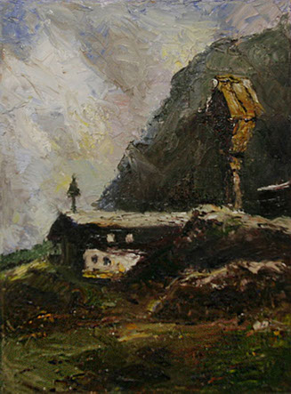 Alpine Scene Detail from work by George Grabone Oil 9" x 12"